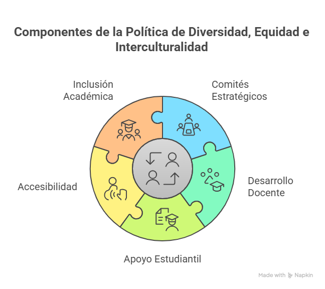 El Comité Técnico para la Diversidad, Equidad e Interculturalidad, liderado por el director de Bienestar y Vida Universitaria, tendrá la misión de orientar y supervisar los planes de acompañamiento individualizados, asesorar a los docentes en la implementación de ajustes razonables, emitir conceptos técnicos y articularse con otras instancias para garantizar una atención integral al estudiante.