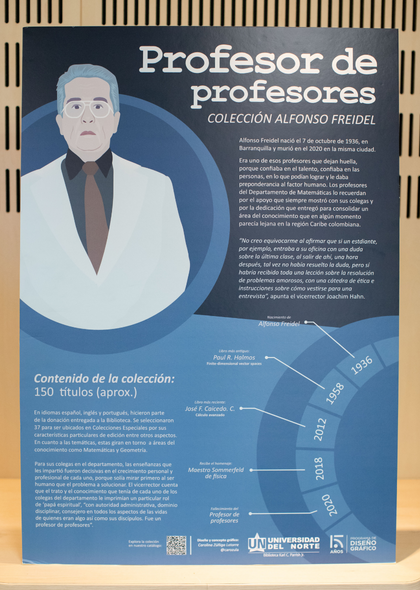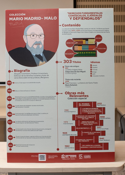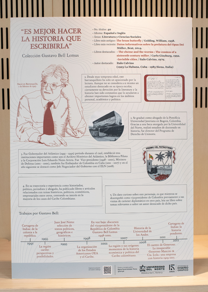 Con el objetivo de visibilizar y promover la consulta y divulgación de las Colecciones Especiales de la Biblioteca Karl C. Parrish Jr., los programas de Diseño Gráfico e Historia y Ciencias Sociales de la Universidad del Norte presentaron el 2 de diciembre el proyecto 'Colecciones Especiales: libros, lecturas y lectores´, realizado por estudiantes de séptimo y octavo semestre de Diseño, cuyos resultados estuvieron expresados en la creación de 16 infografías sobre los personajes más destacados de la cultura y ciencia en Barranquilla y otras partes del país.