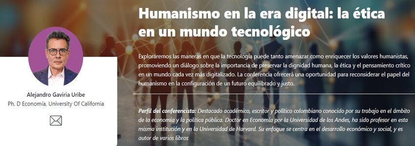El evento cerrará con el conversatorio central a las 5:00 p.m. titulado “Humanismo en la era digital: la ética en un mundo tecnológico”, que contará con la participación de Alejandro Gaviria Uribe, exministro de Educación, y Nancy Gómez, decana de la División de Humanidades de Uninorte. Juntos, analizarán los retos éticos y humanos que surgen en un mundo cada vez más influenciado por la tecnología.