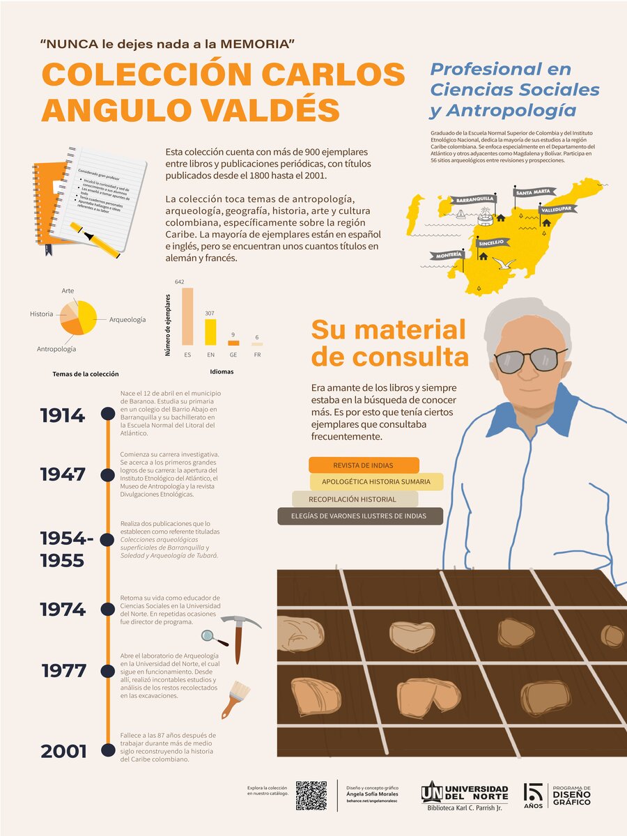 El arqueólogo atlanticense Carlos Angulo Valdés (1914-2001) dedicó su vida al estudio de las huellas materiales de las civilizaciones que habitaron el Caribe colombiano hace milenios, y su trabajo ha dejado una profunda impronta en la comprensión de nuestro pasado remoto. Es por eso que expertos en arqueología y antropología se reunirán el próximo miércoles, 13 de septiembre, en el Biblab 2 de la Biblioteca Karl C. Parrish Jr. para explorar su legado cultural junto con la comunidad universitaria y el público en general.