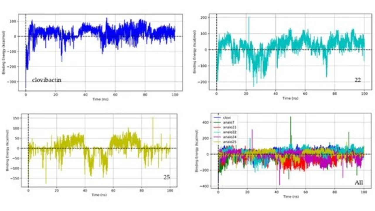 La investigación analizó 2.624 compuestos análogos a la Clovibactina hallados en la base de datos de información química (PubChem). De acuerdo con el grupo de investigación, mediante simulaciones computacionales se demostró que este compuesto se une fuertemente a Lípido II, molécula precursora en la síntesis de la pared celular de las bacterias, y mantiene esta unión de forma estable. Esta capacidad de unión y estabilidad superior sugiere que el compuesto 22 podría ser eficaz contra infecciones. Otros compuestos, como el 7, 21, 24 y 25 también mostraron resultados prometedores, aunque en menor medida.